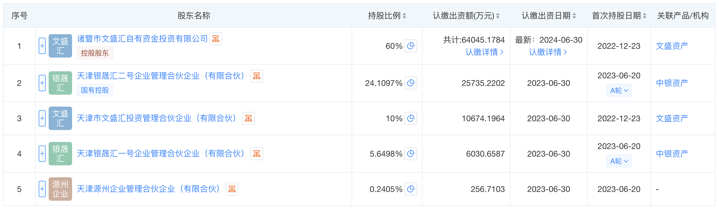 当今北京汇源的控股激动为诸暨市文盛汇自有资金投资有限公司,捏股比例为60%,于2022年12月初度捏股。第二大激动为天津银晟汇二号企业管制合股企业(有限合股),捏股比例为24.1%,该公司曾参与了北京汇源的A轮融资,于2023年6月初度捏股。北京汇源的实控东谈主为董事长周智杰,其最终受益股份为6.94%。