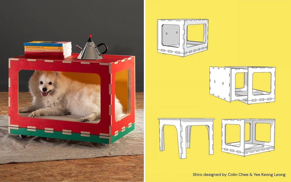 Never Too Small的创意总监Chee也参与了由我方发起的这一联想花样中。他联袂童年好友、来自马来西亚建筑事务所Bid Studio的联想师Yee Keong Leong,为他我方的“毛孩子”Shiro联想了这件“躲闪玄机”的宠物床。