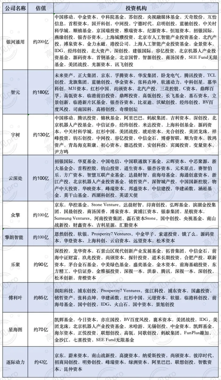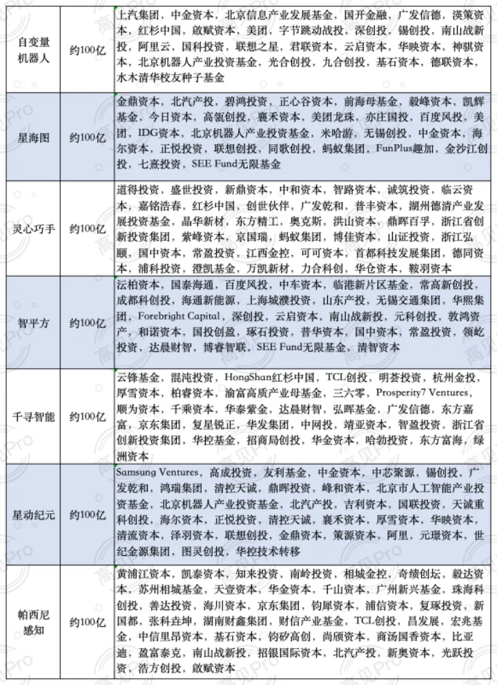 具身智能百亿估值阵营: